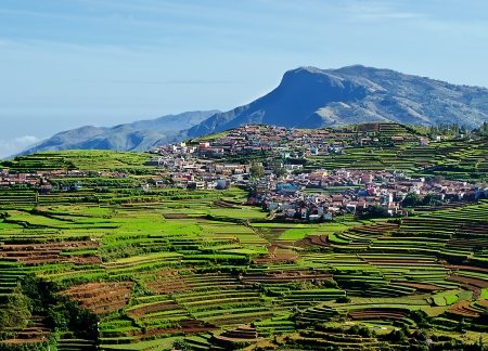 The town of Kodaikanal sits on a plateau above the southern escarpment of the upper Palni Hills at 2,133 metres (6,998 ft), between the Parappar and Gundar Valleys. These hills form the eastward spur of the Western Ghats on the Western side of South India.